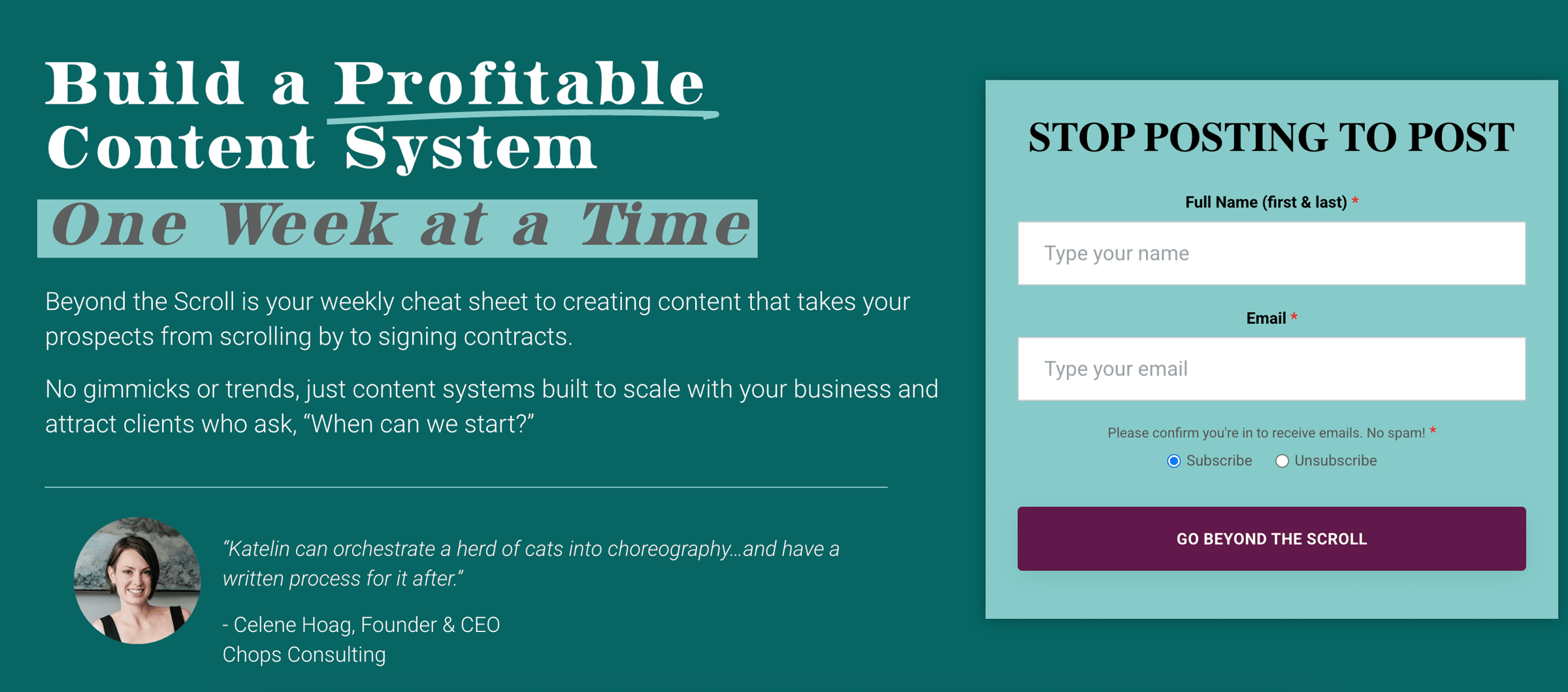 ​Bryan Yates​ has a very bold positioning, the perfect way to tell you what’s in it for you if you subscribe — or make you hate it instantly, which is also a win.