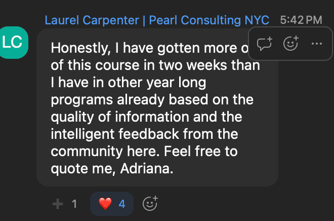 I trusted the format would do most of the heavy lifting. A hands-on bootcamp is VERY different from the cohort programs you usually see, and I KNOW people want this format rather than course-like canned advice.