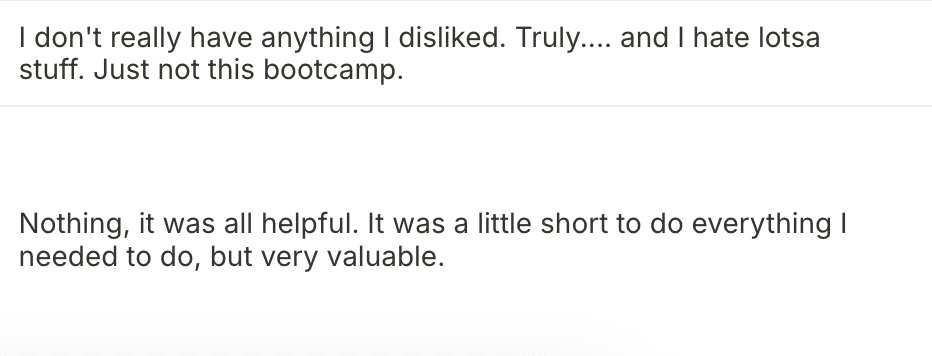 This tells me that the bootcamp went great, and people see the value in joining for a full year. I’m VERY proud of this!